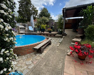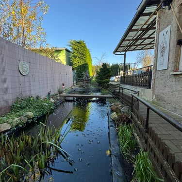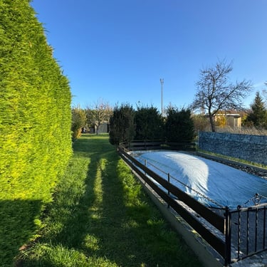Angelassener Pool, 2 Terassen, Brunnen und Koikarpfenteich